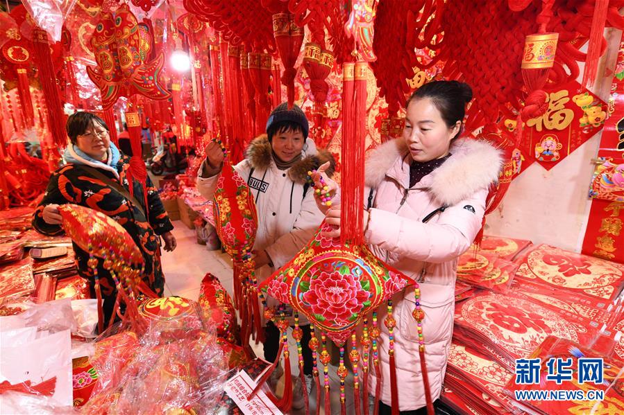 1月13日,市民在安徽省阜阳市一家商城内选购春节挂件。新华社发(王彪 摄)