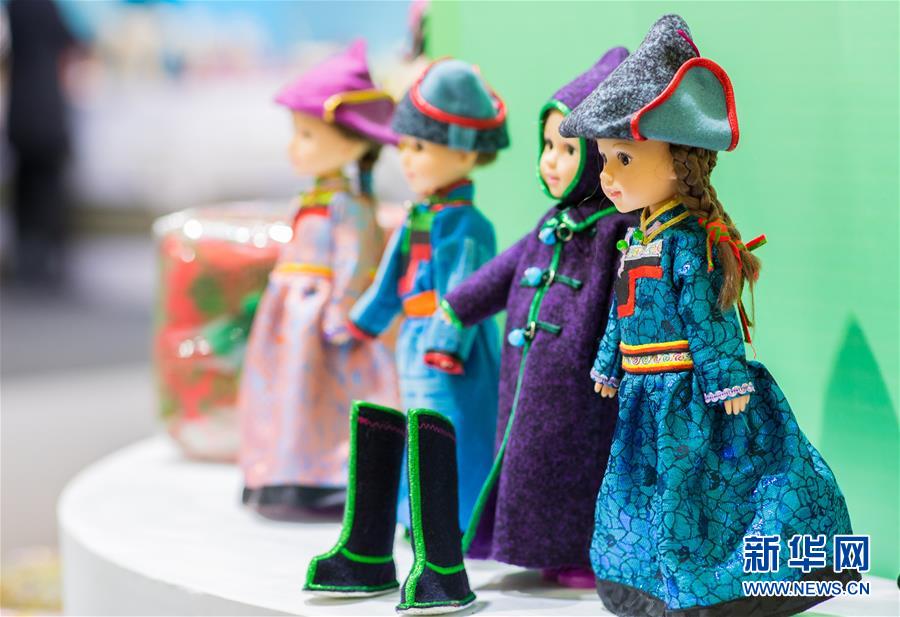 这是非遗年货展上的蒙古族人偶文创产品(1月14日摄)。 1月14日,为期五天的“非遗过大年 文化进万家——2020年内蒙古非物质文化遗产年货展”在位于呼和浩特的内蒙古展览馆开展,全区12个盟市带来百余个非遗项目展演、展示展销、互动体验等活动。 新华社发(丁根厚 摄)