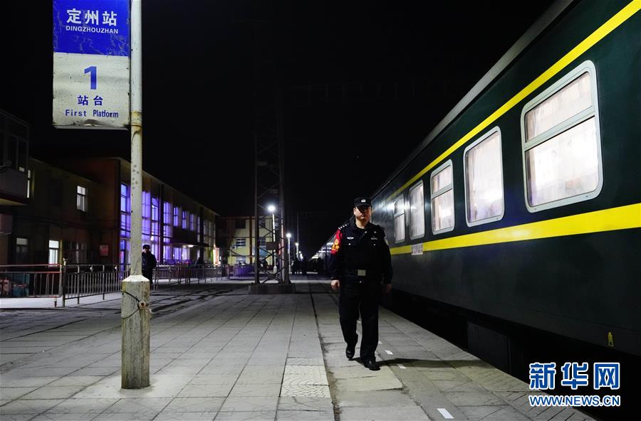 1月14日,陈大伟在定州站下车巡视。新华社记者 邢广利 摄