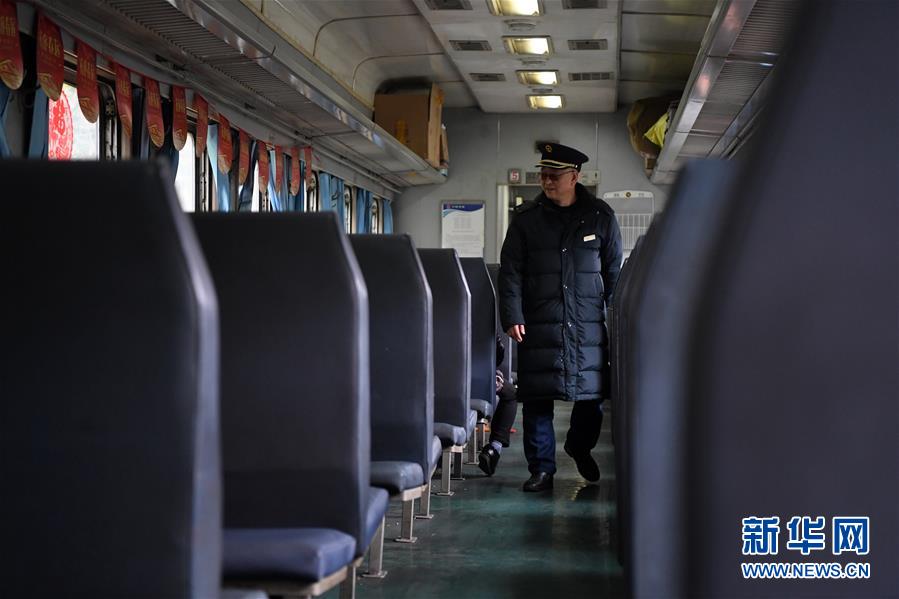 1月13日,张维华在川黔线普速列车上巡视。新华社记者 唐奕 摄