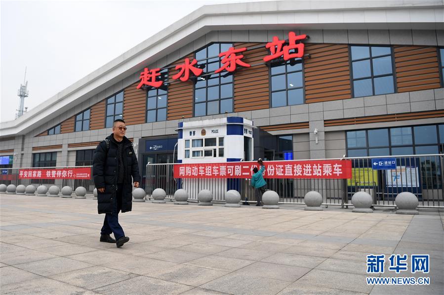 1月13日,张维华从赶水东站外走过。新华社记者 唐奕 摄