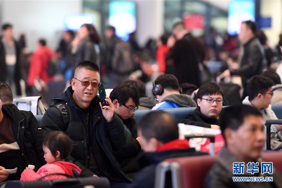 1月13日,张维华在重庆西站候车时与家人通话。新华社记者 唐奕 摄