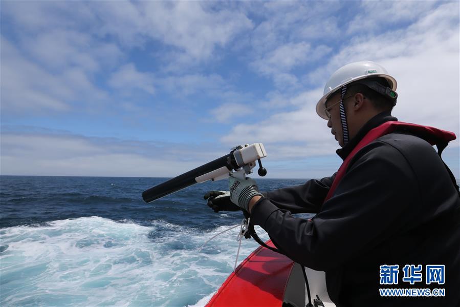 科考队员在“雪龙2”号上投放抛弃式温盐深测量仪(1月15日摄)。新华社记者 刘诗平 摄