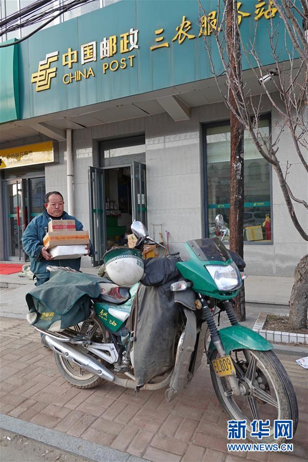 董绍江在莱西市沽河街道孙受邮政局搬运快件(1月14日摄)。新华社记者 丁洪法 摄