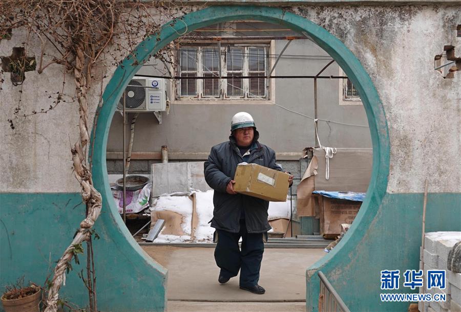 1月16日,董绍江在莱西市沽河街道孙受二村派件。新华社记者 丁洪法 摄