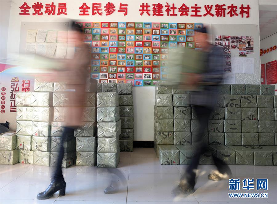 1月16日,在康平县西关屯蒙古族满族乡罗家屯村,村民将特色农产品打包发送快递。 辽宁省沈阳市康平县建立健全脱贫长效机制,继续巩固提升脱贫攻坚成果。康平县通过设立扶贫车间、大力发展设施农业、加工和网络销售特色农产品等多种方式,助力农民脱贫致富。 新华社记者 杨青 摄