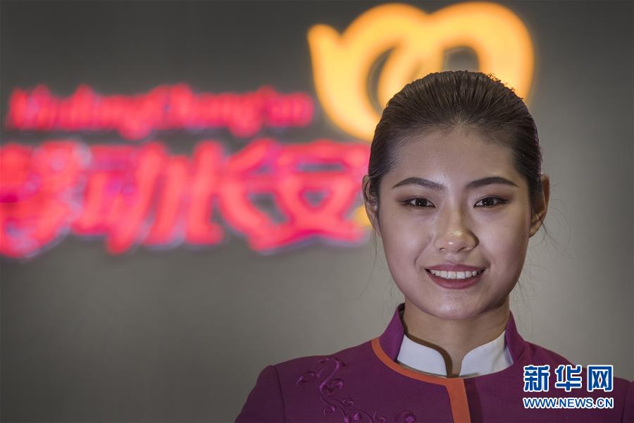 吉如在西安北站“馨动长安”服务台迎接旅客(1月15日摄)。新华社记者 陶明 摄