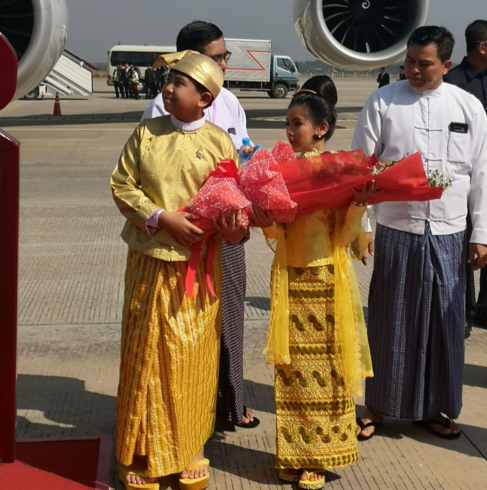 缅甸第一副总统敏瑞率多名内阁部长热情相迎。