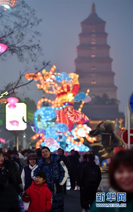 1月17日,游客在西安大唐不夜城游览。新华社记者 张博文 摄