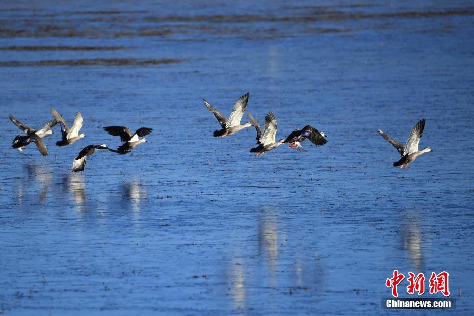 1月17日,纳帕海湿地栖息的候鸟。近年来,云南省迪庆藏族自治州香格里拉市为保护好纳帕海湿地,通过生态补偿争取当地民众支持,积极整治周边水环境,使湿地生态环境得到修复,冬季候鸟种群与数量逐年增加,成为候鸟越冬天堂。中新社记者 刘冉阳 摄