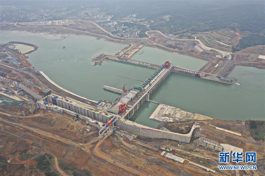 这是建设中的大藤峡水利枢纽工程(1月17日摄,无人机照片)。 建设中的大藤峡水利枢纽工程是国务院确定的172项节水供水重大水利工程之一,2020年是大藤峡水利枢纽工程下闸蓄水、通航、发电的关键一年,不少工作人员放弃回家过年的机会,坚守工作岗位。 新华社记者 曹祎铭 摄