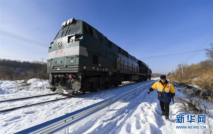 临近送水地点,送水员黄卫东指挥列车前往停靠点(1月17日摄)。新华社记者 许畅 摄