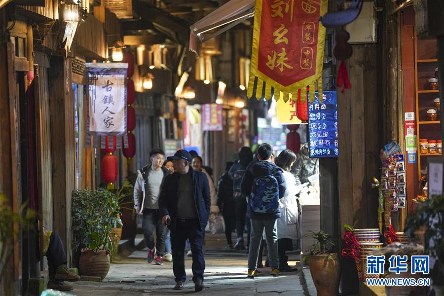 游客在中山古镇的老街上品味“慢”生活(1月17日摄)。新华社记者 刘潺 摄