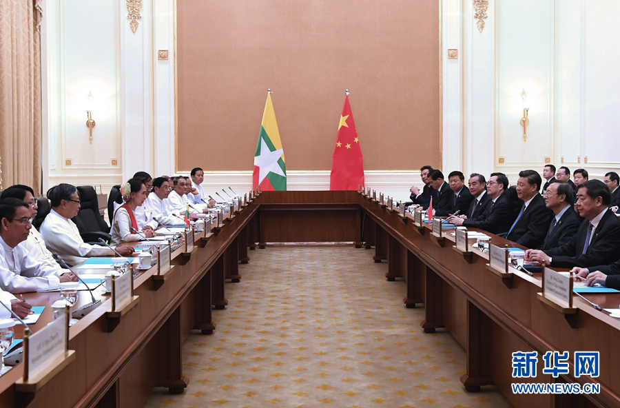 习近平同缅甸国务资政昂山素季会谈