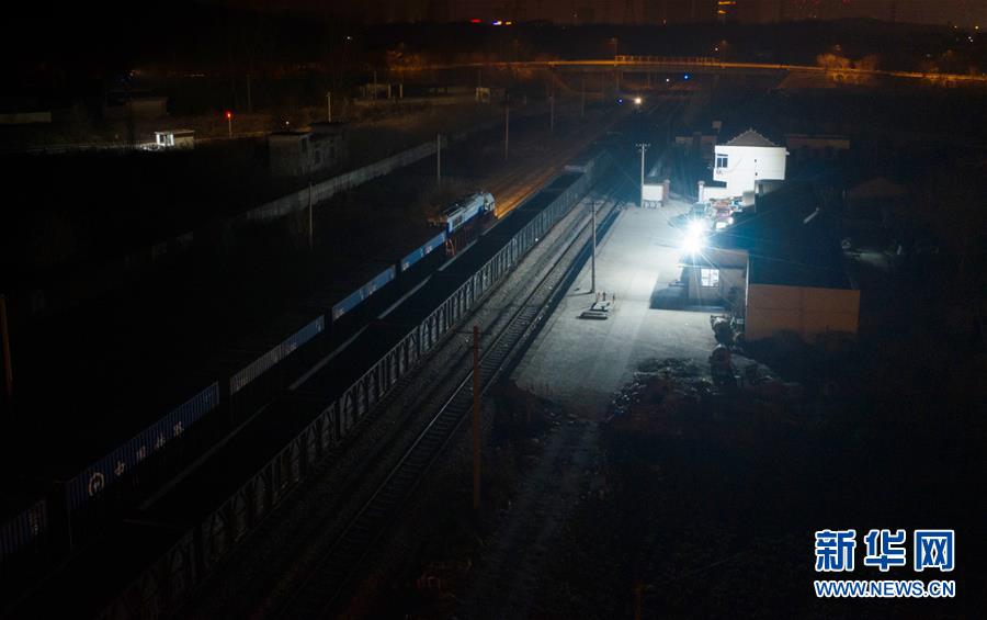 1月14日,一列列车经过镇江上隍站(无人机照片)。 新华社记者 李博 摄
