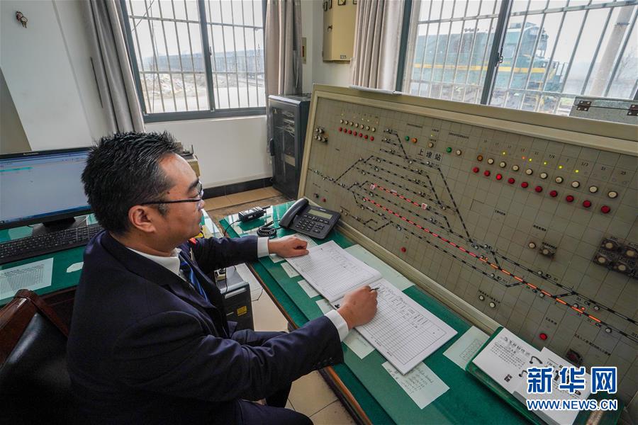 镇江直属站上隍车站值班员左达华在值班室内监视信号(1月14日摄)。 新华社记者 李博 摄