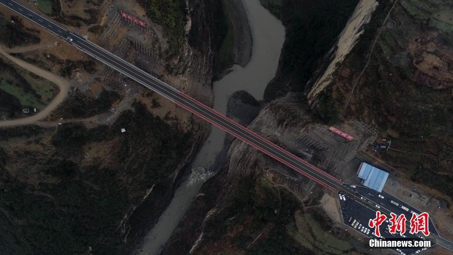 1月21日,四川叙永,空中俯瞰建成的鸡鸣三省大桥。当日,位于川滇黔交界处的鸡鸣三省大桥建成通车。中新社记者 刘忠俊 摄