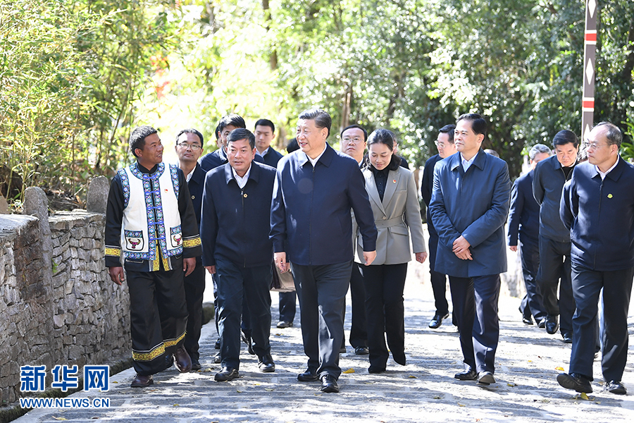 1月19日至21日,中共中央总书记、国家主席、中央军委主席习近平来到云南,看望慰问各族干部群众,向全国人民致以新春祝福。这是19日下午,习近平在腾冲市清水乡三家村中寨司莫拉佤族村了解乡村振兴和建设少数民族特色村寨情况。 新华社记者 谢环驰 摄