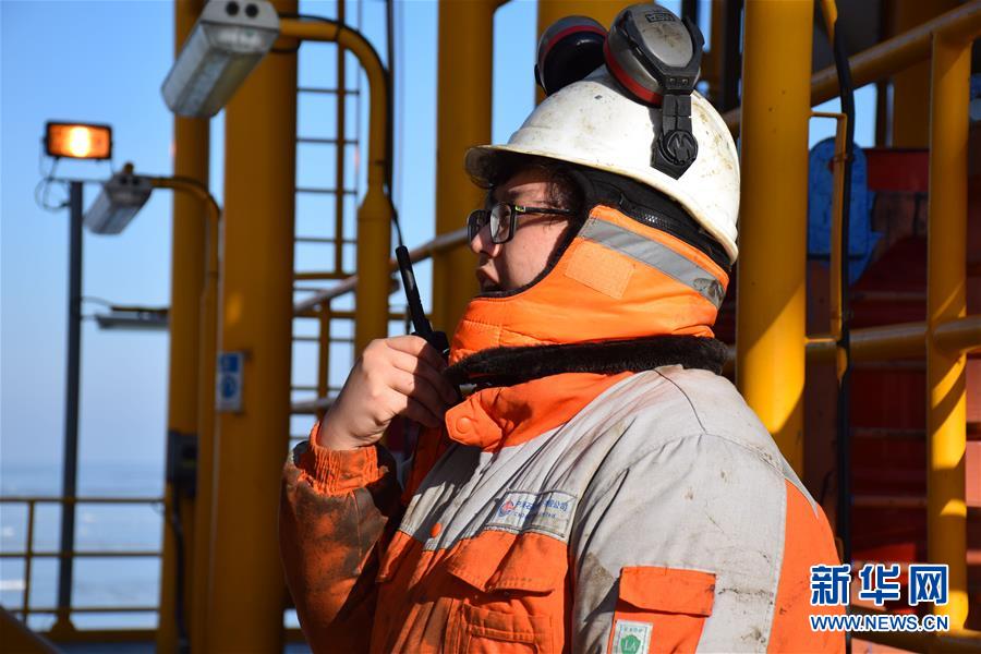 1月14日,操作工时间在中海油锦州9-3油田检查设备。新华社记者 白佳丽 摄