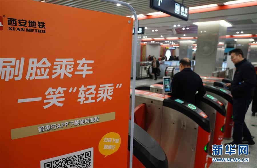 1月21日,乘客在西安地铁4号线大唐芙蓉园站“刷脸”进站。新华社记者 邵瑞 摄