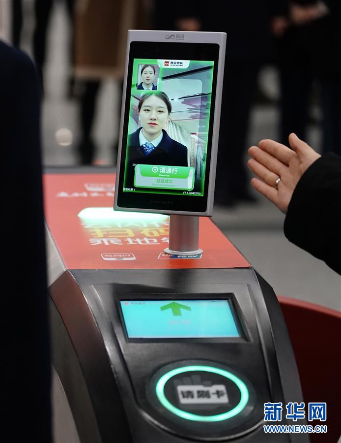 1月21日,工作人员在西安地铁4号线大唐芙蓉园站演示“刷脸”进站。新华社记者 邵瑞 摄