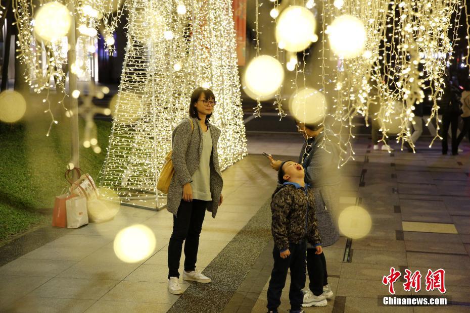1月21日,农历腊月二十七,台北街头点亮各色彩灯迎接春节的到来。图为台北地标建筑101大楼附近街道“火树银花”。中新社记者 史元丰 摄