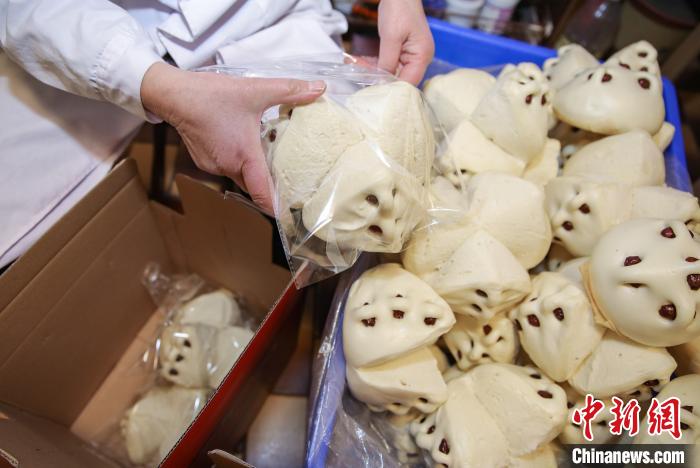 1月21日,山东荣成宁津街道东钱家村村民王秀香正在蒸制大枣饽饽。春节将至,年味愈浓,王秀香每天要蒸制200多个大饽饽,以满足顾客需求。花饽饽是胶东妇女根据地域特色、节日和生活习俗而创造的一种艺术样式。在胶东地区,最具年味儿的年俗莫过于蒸上几锅大饽饽。