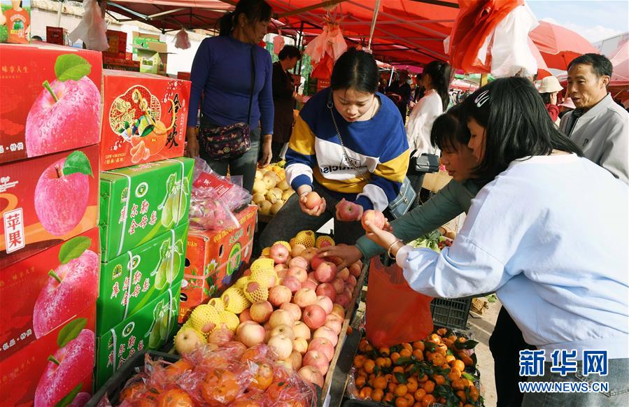 1月21日,消费者在曲靖市麒麟区珠街街道农贸市场购买水果。新华社记者杨宗友摄