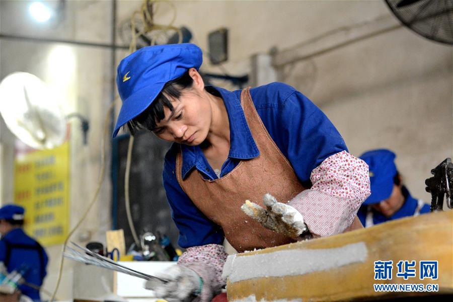 梁桂枝在车间劳作(2019年12月10日摄)。新华社发(孙赟飞摄)