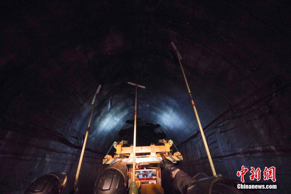 他们就是铁路“打冰人”。每年12月至来年2月的冰冻期,他们每天都要驾驶轨道车进入铁路隧道,清除隧道拱顶和侧壁的结冰,确保列车安全运行。图为1月14日,工人站在平板车上用T形长杆清除隧道拱顶的结冰。中新社记者 贾天勇 摄