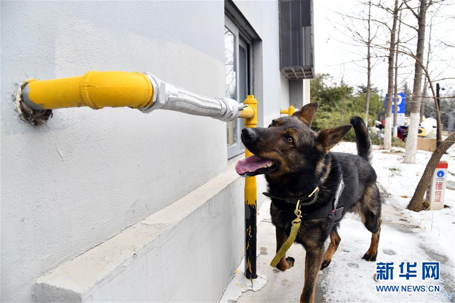 1月22日,在济南市市中区,山东济华燃气有限公司的嗅探犬“优先”在巡查燃气管线。 春节临近,为更好地保障燃气管网安全,山东燃气管网部门增加安全保障手段,采取嗅探犬排查加人工分析判断、设备检测确认的工作模式,快速找到燃气泄漏点,及时消除隐患。 新华社记者 郭绪雷 摄
