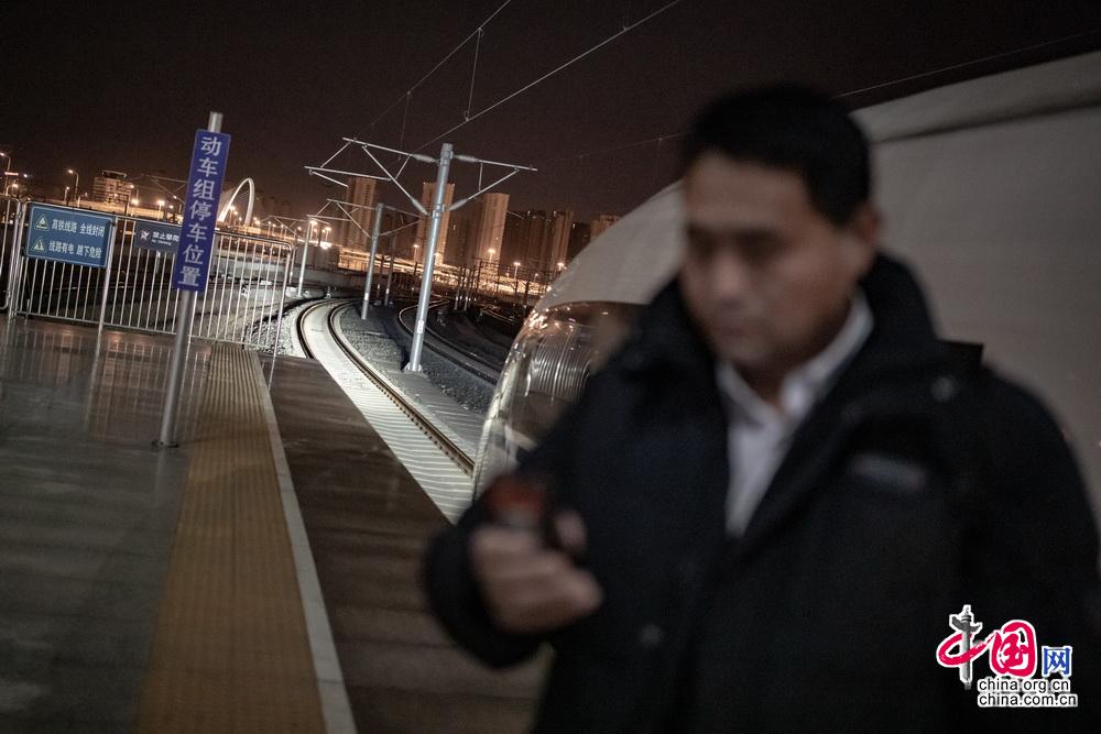 “说实话这马上要退休了还真有点舍不得,现在还没想过退休以后干点什么,先站好这最后一班岗吧,能让那么多旅客安全平稳的到家,就是咱们作为铁路人最感到欣慰的了。”老曹还说,今年的除夕自己在中午应该就能结束工作,晚上可以陪家人吃上自己到铁路工作以来的第二顿春节团圆饭了。中国网记者 郑亮摄