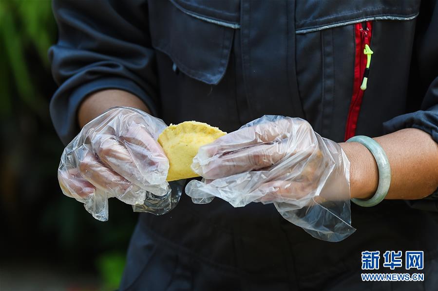 1月23日,工作人员在为大熊猫制作“饺子”。 当日,位于海口的海南热带野生动植物园为园内大熊猫“贡贡”“舜舜”准备了“饺子”。这些“饺子”由工作人员用玉米粉、黄豆粉、面粉、钙粉和鸡蛋混合制成饺子状,再蒸熟而成。此外,该园还为“贡贡”“舜舜”准备了苹果、甘蔗和胡萝卜等食物,并在熊猫馆内挂起了红灯笼和福字,与“国宝”们共迎春节。 新华社发(蒲晓旭 摄)