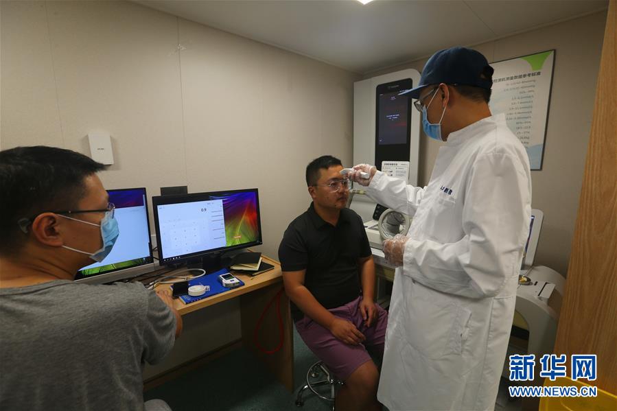 1月23日,“雪龙2”号船上医生为新登船队员进行医学诊查。 新华社记者 刘诗平 摄