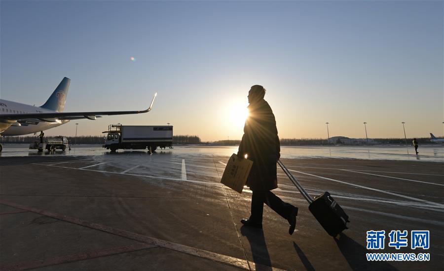 1月20日,在沈阳桃仙机场,张天杨准备登机。新华社记者 杨青 摄