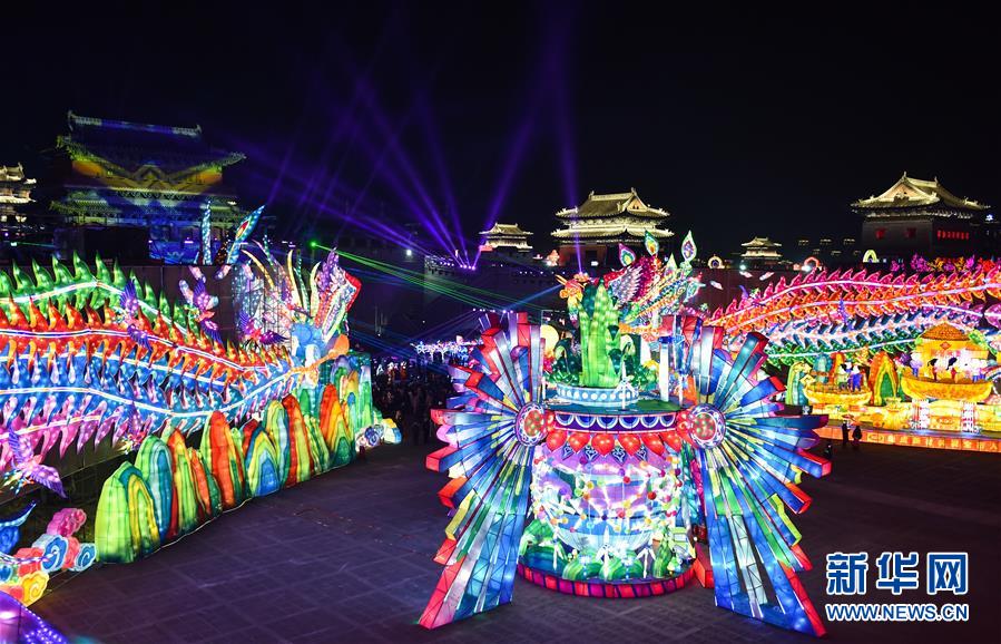 1月23日晚拍摄的大同古都灯会的花灯。 春节将至,“2020中国大同古都灯会”现场张灯结彩,营造出浓浓的节日氛围。 新华社发(柴婷 摄)