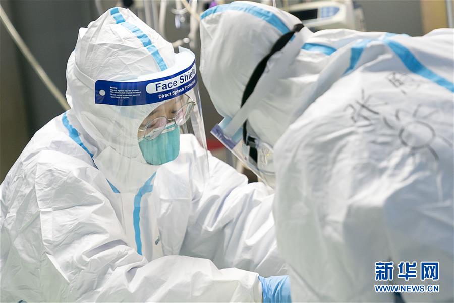 1月24日,在武汉大学中南医院重症隔离病房,医护人员对病人进行治疗。 新华社记者 熊琦 摄