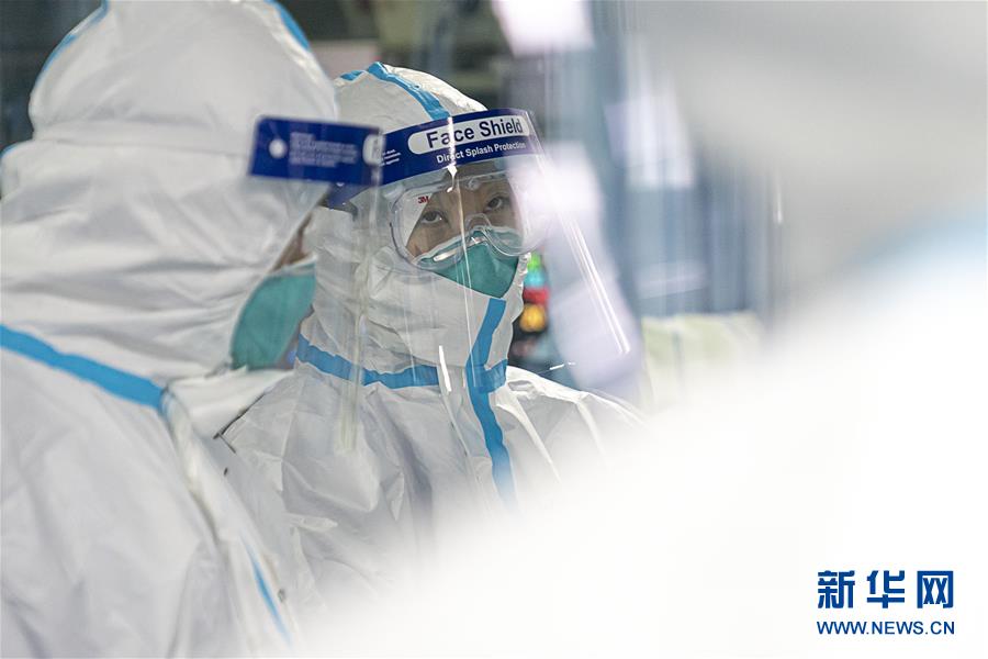 1月24日,在武汉大学中南医院重症隔离病房,医护人员为病人治疗。新华社记者 熊琦 摄