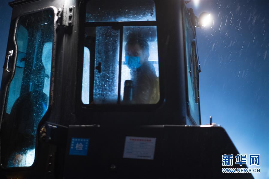 1月24日,在武汉火神山医院建设工地,工人操作大型机械加紧施工。 除夕夜,武汉火神山医院建设工地灯火通明,建设团队放弃与家人团聚,加紧建设这座专门医院。 武汉市参照2003年抗击非典期间北京小汤山医院模式,正在蔡甸区建设的专门医院正式命名为火神山医院。新医院计划于2月3日建成,集中收治新型冠状病毒感染的肺炎患者。 新华社记者 肖艺九 摄