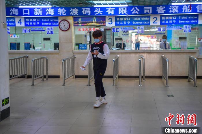 图为在海口港客运站售票大厅,一位佩戴口罩的旅客刚购买完过海船票。 骆云飞 摄