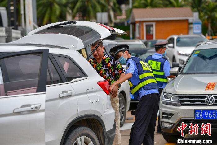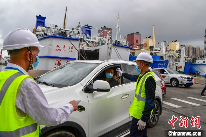图为海口港工作人员对出岛自驾车辆进行安全检查。 骆云飞 摄