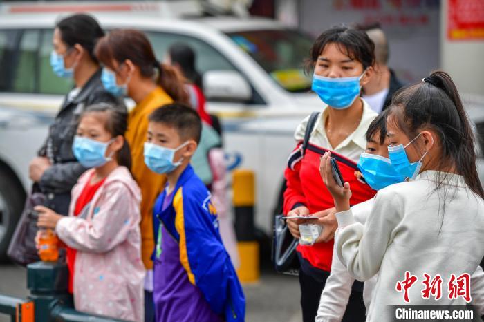 图为在海口港安检口,医务人员对进入旅客进行体温检测。 骆云飞 摄