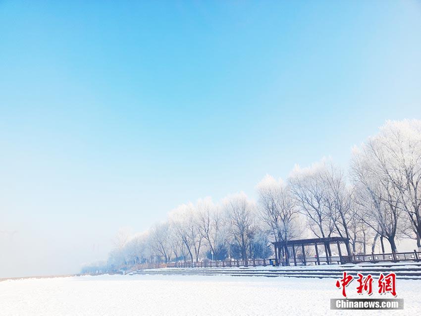 途经吉林市城区的部分松花江水域雾气缭绕,在当地江滨公园、阿什村附近,晶莹透亮的结晶爬上树枝,微风吹起时宛如梦幻之地。 石洪宇 摄