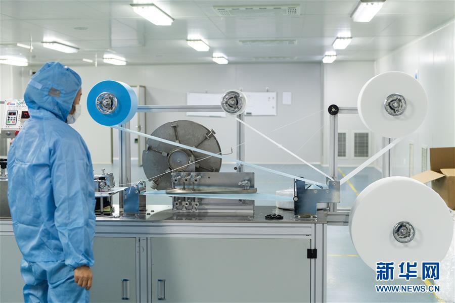 1月26日,湖南临澧经济开发区湖南永康医疗器械有限公司员工在制作口罩。 新华社发(陈思汗摄)
