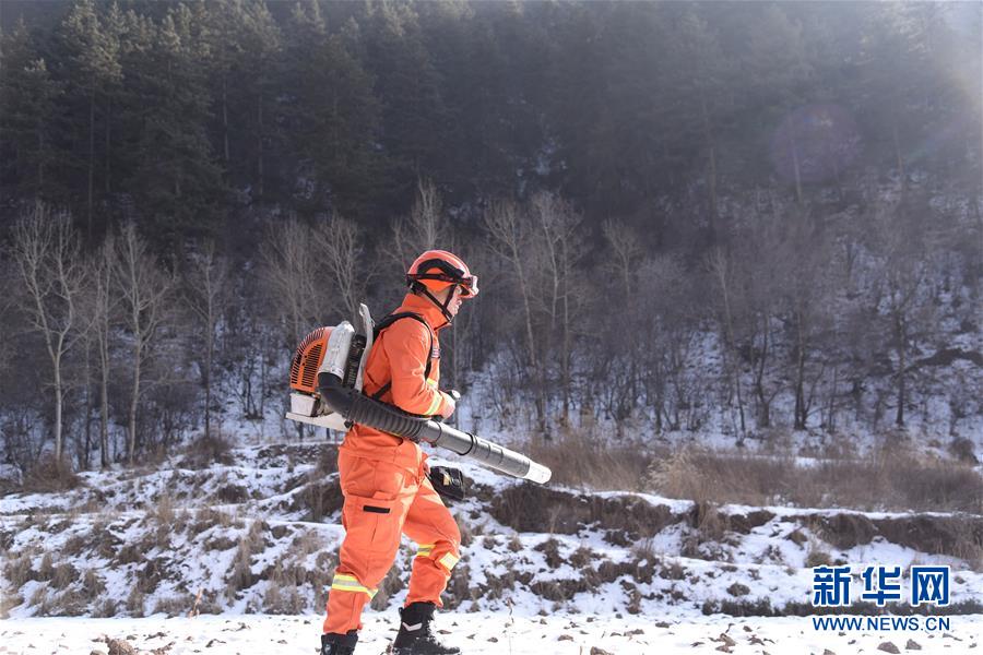 甘肃省森林消防总队特勤大队一中队队员在连城国家级自然保护区巡逻(1月21日摄)。新华社发(崔翰超摄)
