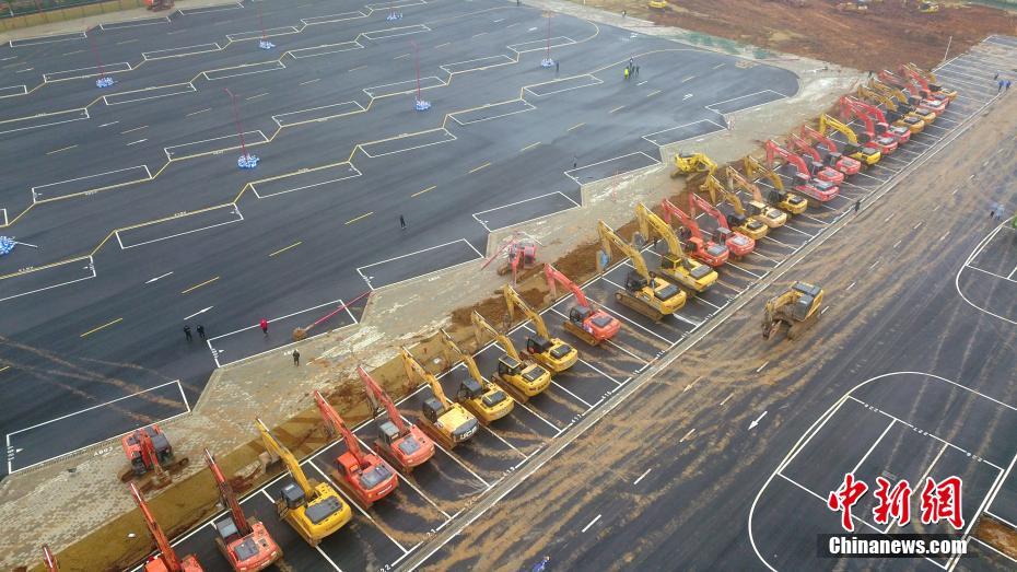 1月26日,武汉雷神山医院建设现场。为应对新型冠状病毒感染的肺炎疫情,位于武汉市江夏区的雷神山医院初定新增床位1300张,预计2月5日可投入使用。中新社记者 郑子颜 摄