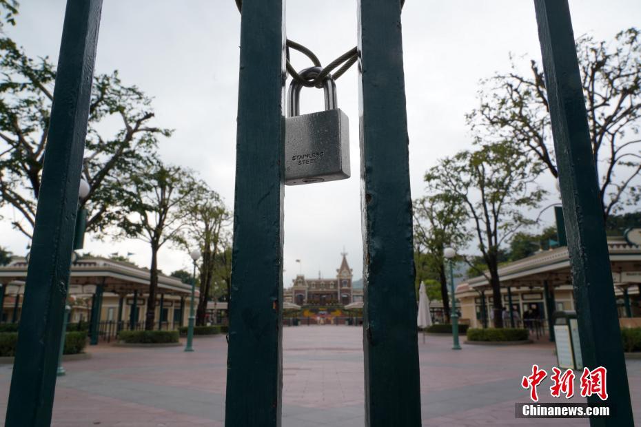 1月26日,香港迪士尼乐园度假区宣布,为了配合香港现时采取的防疫措施,迪士尼乐园考虑宾客和演艺人员的健康及安全,乐园从1月26日起暂停开放,视乎情况,公布重开日期。图为迪士尼乐园大门已经上锁。中新社记者 张炜 摄
