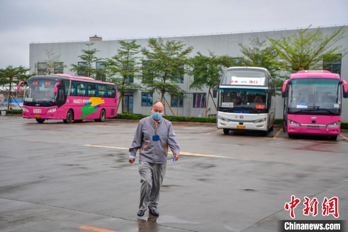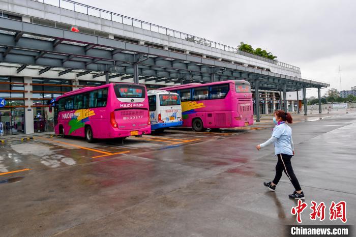 图为海口长途客运总站的工作人员佩戴口罩行走在停车场。 骆云飞 摄
