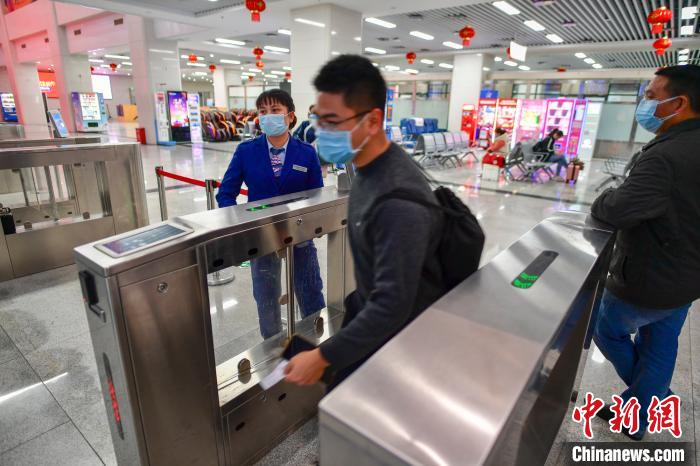 图为旅客佩戴口罩检票。 骆云飞 摄