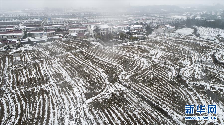 1月27日拍摄的舒城县雪后田野与农舍(无人机照片)。 一夜之间,鼠年的第一场大雪将安徽省舒城县装点成一片洁白的世界,广袤的田野呈现出千姿百态的线条,犹如一幅展开的锦绣画卷。 新华社记者 陶明 摄